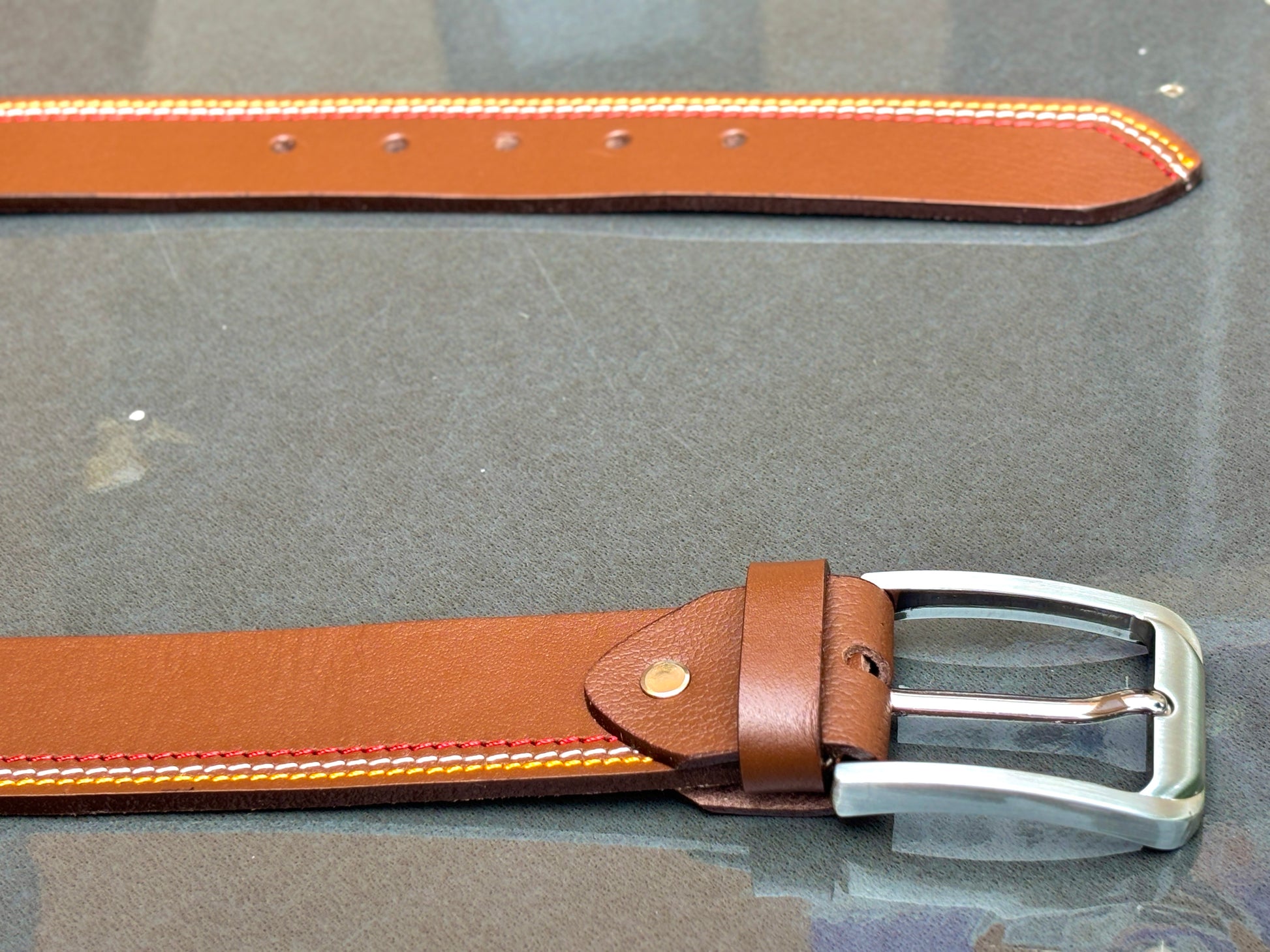 Brown Full Grain 100 % Leather Jeans Belt - Side Stitch
