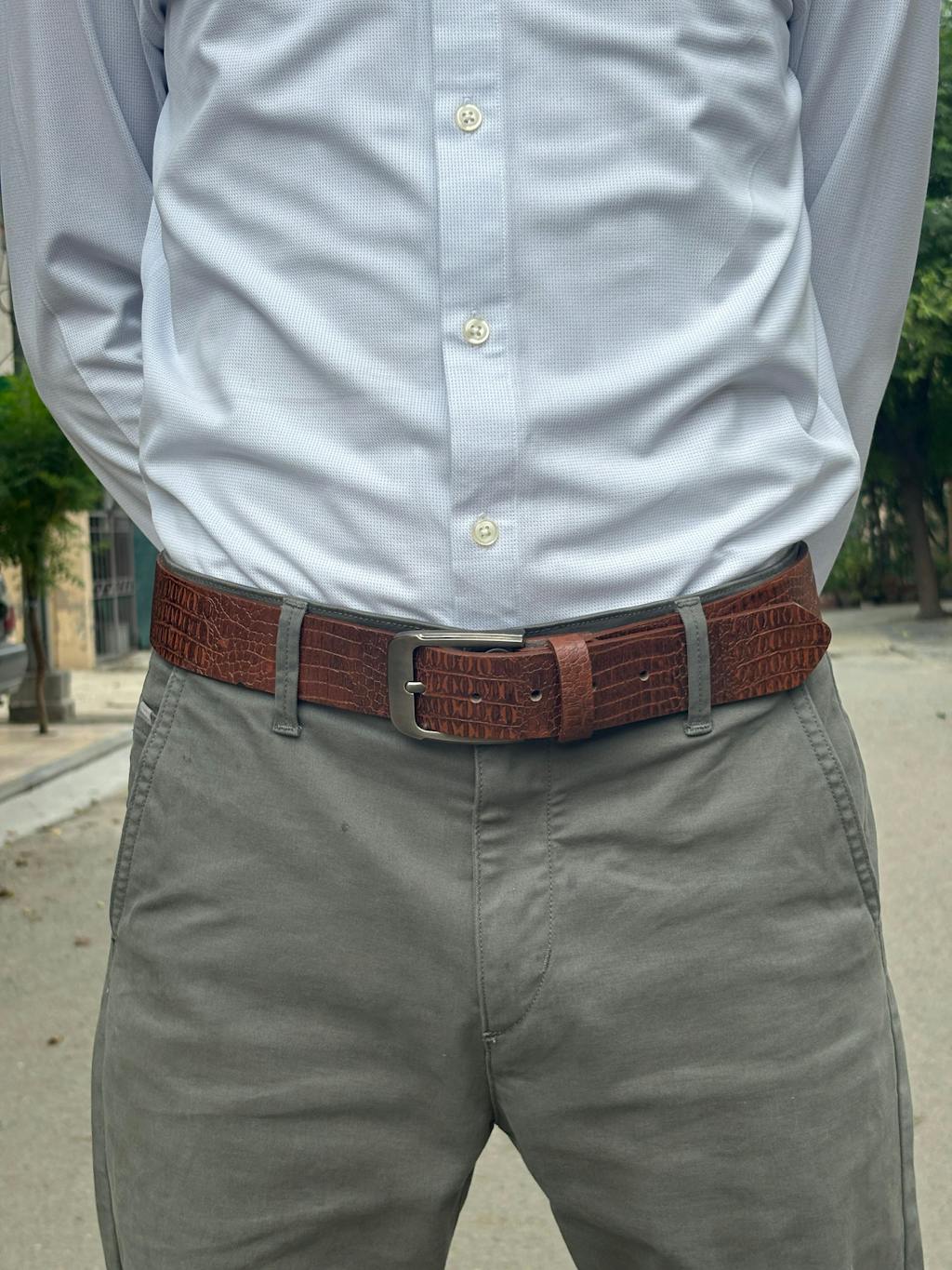 Full Grain 100% Pure Leather Belt - No Peeling or Cracking - Best For Jeans- Crocuffalo Brown