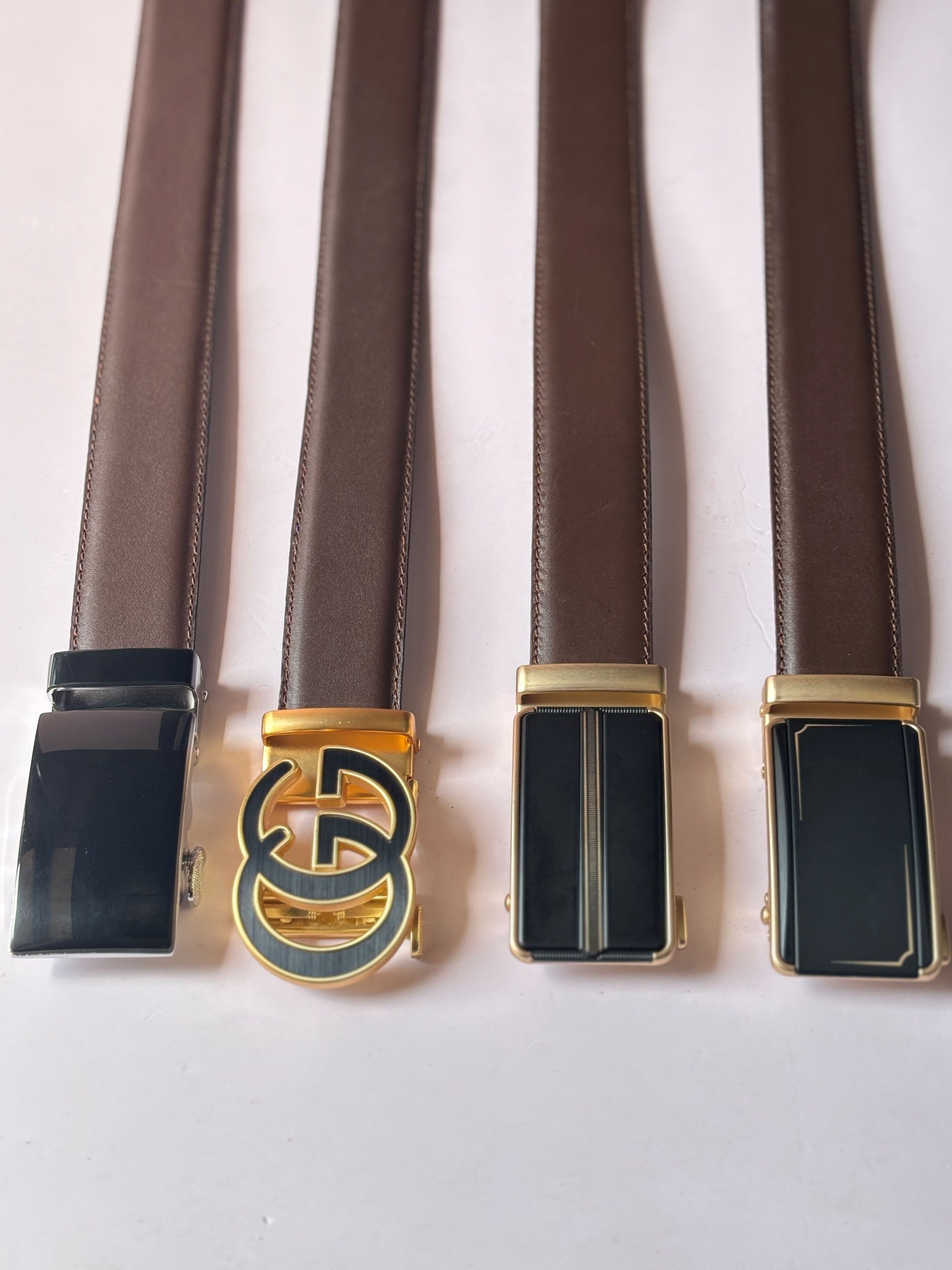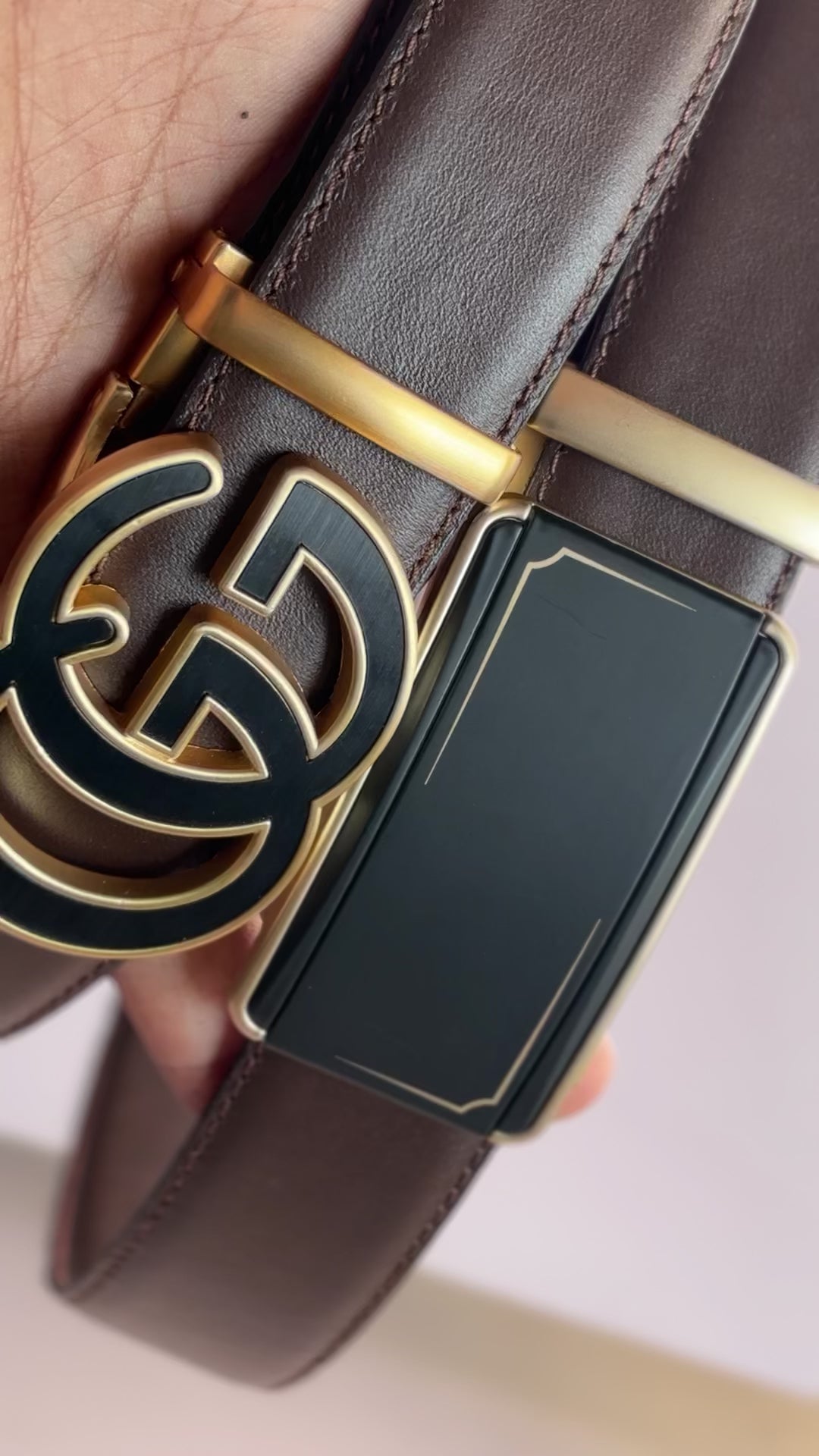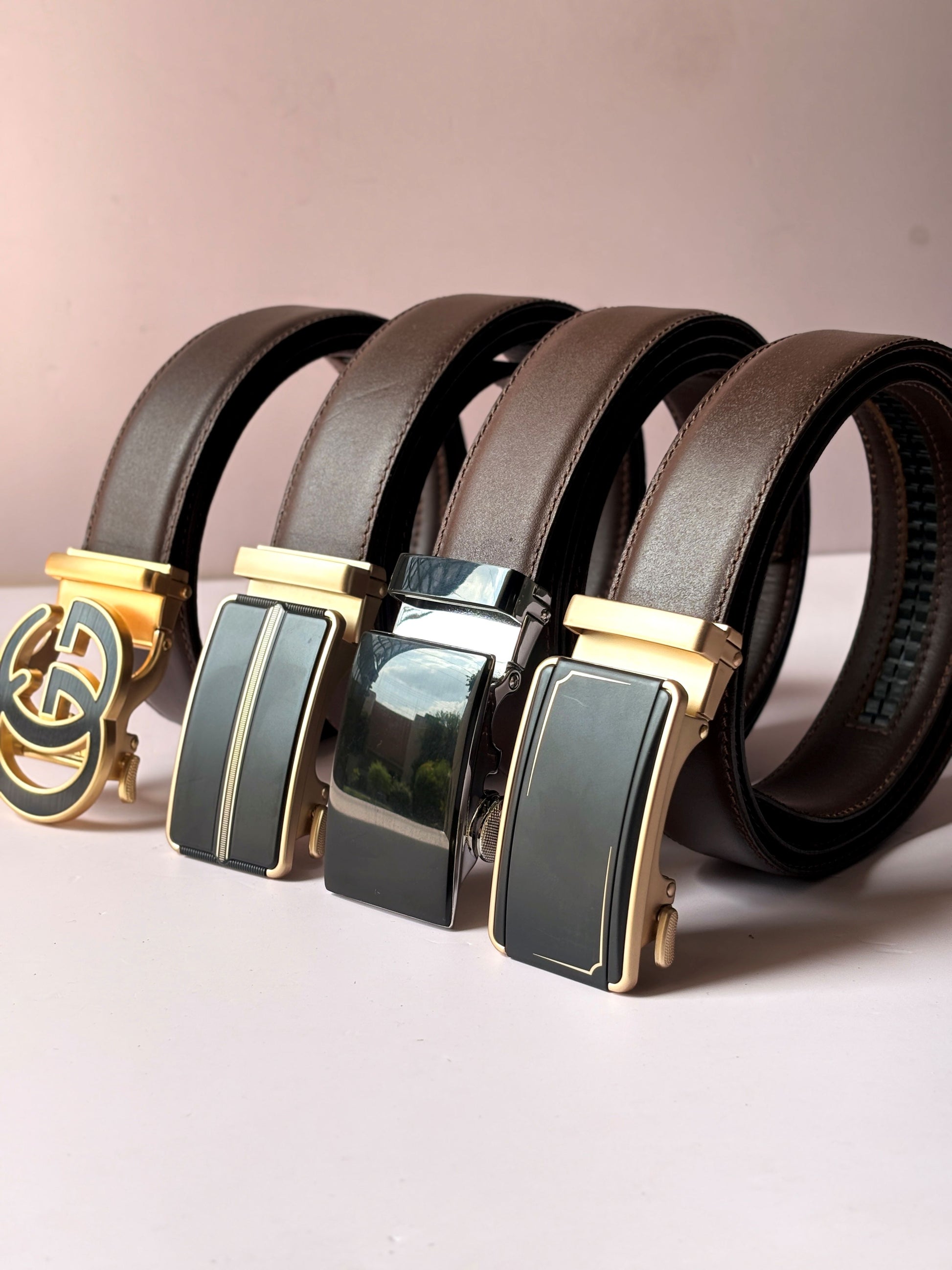 Real Full Grain 100% Cow Leather, Not Artificial Premium Auto Lock Belt – Dark Brown – Soft, Durable, Elite